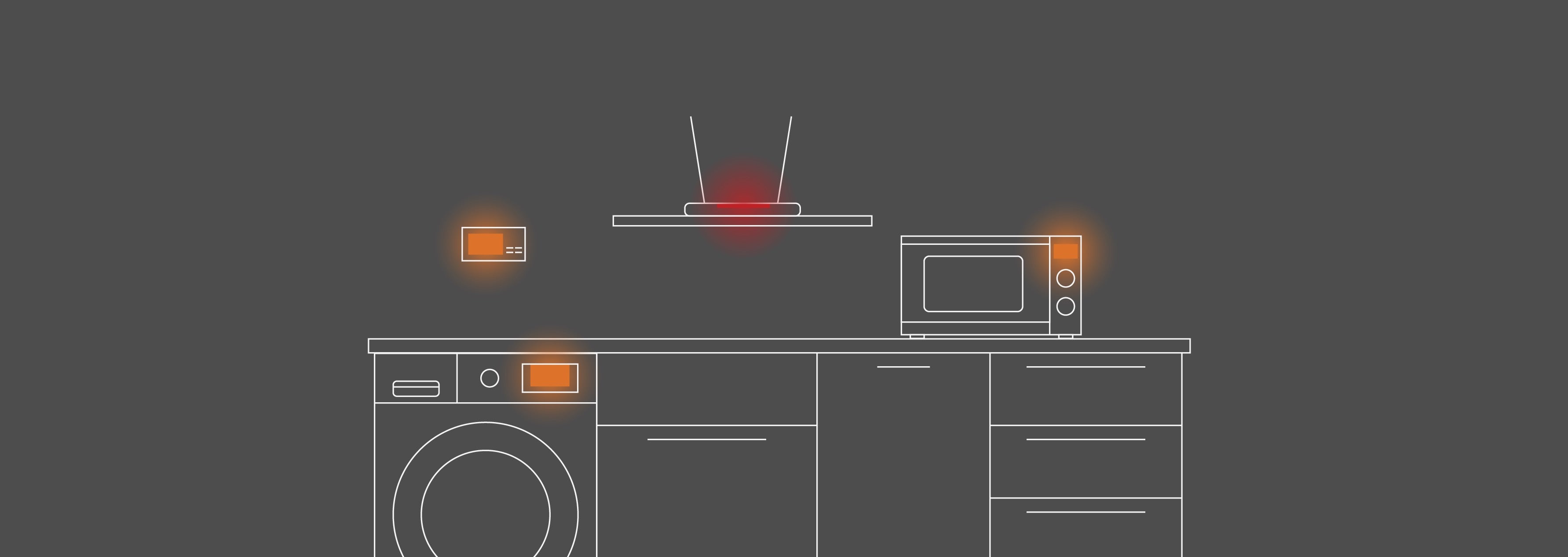 Red for controll lights and simple screens like: WiFi Routers, TVs, Chargers, ACs.